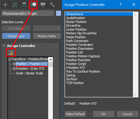 All the controller types are described in the Autodesk documentation. Usually, the ones applied by default are well-suited for the task at hand. There are situations, however, when you might want to change the controller. For example, the default Euler XYZ for rotation won’t work well when your rotation angle is over 180° between two nearby keys. For this situation it is better to use a TCB rotation controller instead.