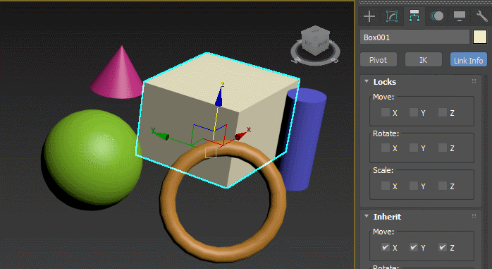 Go to the Hierarchy tab (next to Modifiers) and press the ‘Link Info’ button. This is where you can lock object transformation for any axis and for any of the three main transforms. For example, if you lock the Z axis, your object will stop going up and down, but you can still move it around the X and Y axes. Similarly, if you lock all the movement axes, you can still rotate and scale such an object. All locks work with local coordinates.