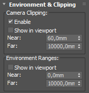Depending on what camera you use, the parameters could be located in different places. In CoronaCamera there is an Environment & Clipping tab (Chaos Corona), and in VRayPhysicalCamera, the name is Clipping & Environment instead. In standard PhysCamera clipping settings are hidden under Miscellaneous. Uncheck the Enable box or adjust the Near value, and your objects will appear again.