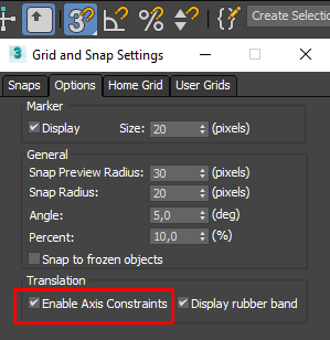 3DS MAX lets you apply transformations on any single axis or a pair of axes. If you need to move an object to a particular point in the scene, activate snaps by pressing S. By default, the object moves across all the axes simultaneously, locking the individual choice. To move/rotate/scale an object on a single axis using snapping in 3DS MAX, right-click the Snaps Toggle icon, and check the Enable Axis Constraints box in the Options tab.