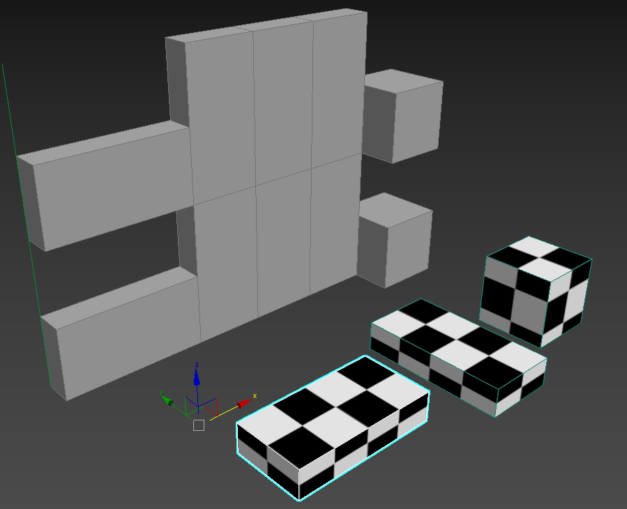Apart from the aforementioned axes alignment, there is another rule for creating 2S arrays: the height of all the segments on the same level should be the same while the width can vary. In the example above, the segments share their Y size, while Z and X differ. Using these segments, RailClone creates solid geometry without holes. If we change the Y size of the pillar segment, the brick segments will not copy vertically to fill in the gaps. However, if we change the X size of the same block, the bricks’ position will adjust accordingly.